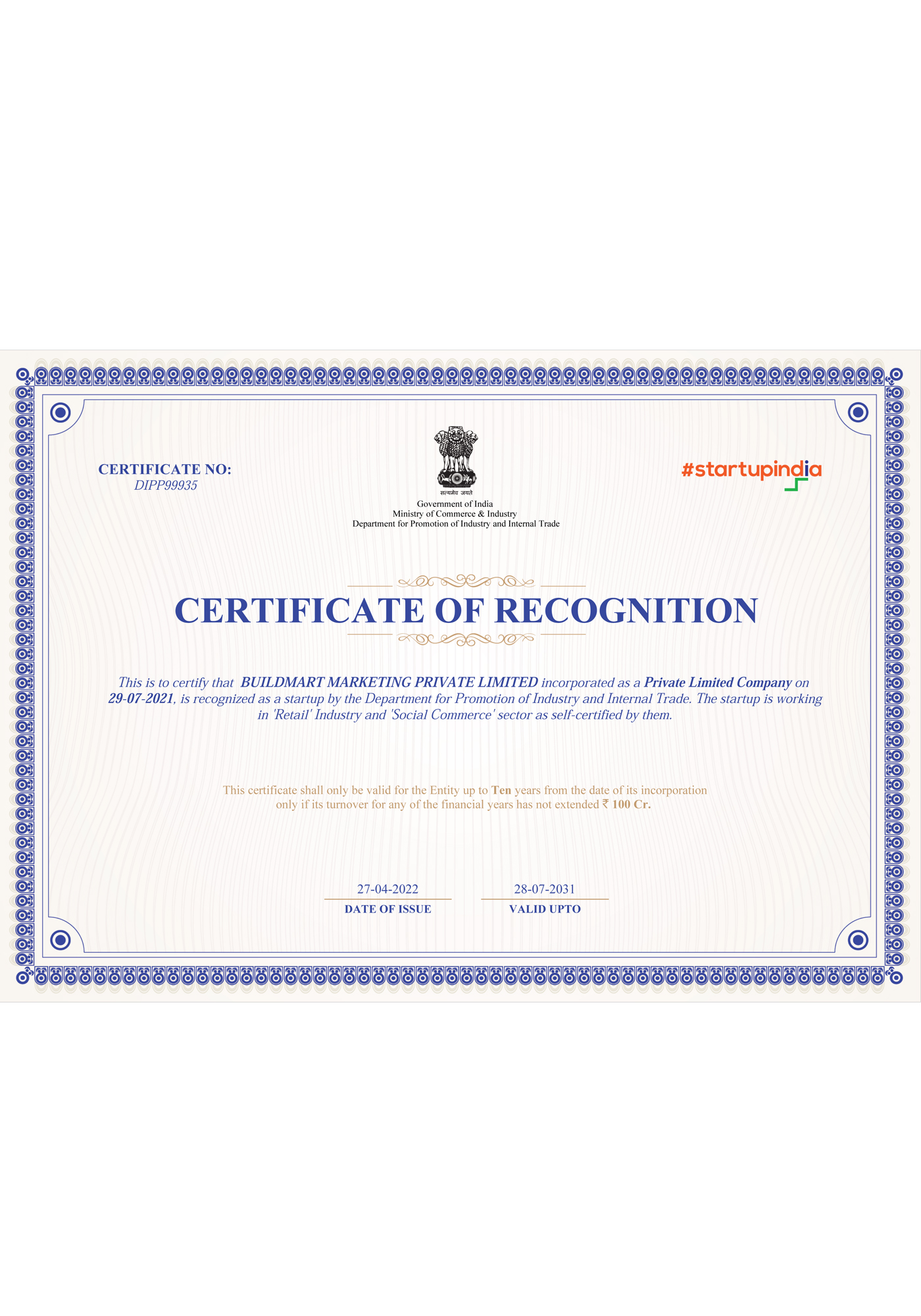 Company Incorporation Certificate